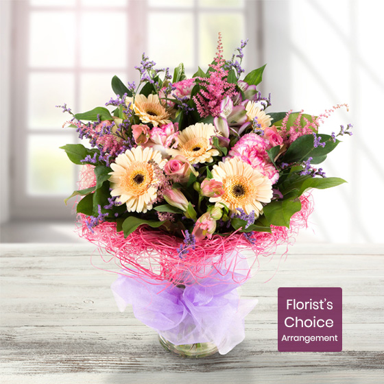 Unsure what to flowers send? Simply select a colour theme and price and we will prepare a stylish arrangement of flowers to suit the occasion in a glass vase.